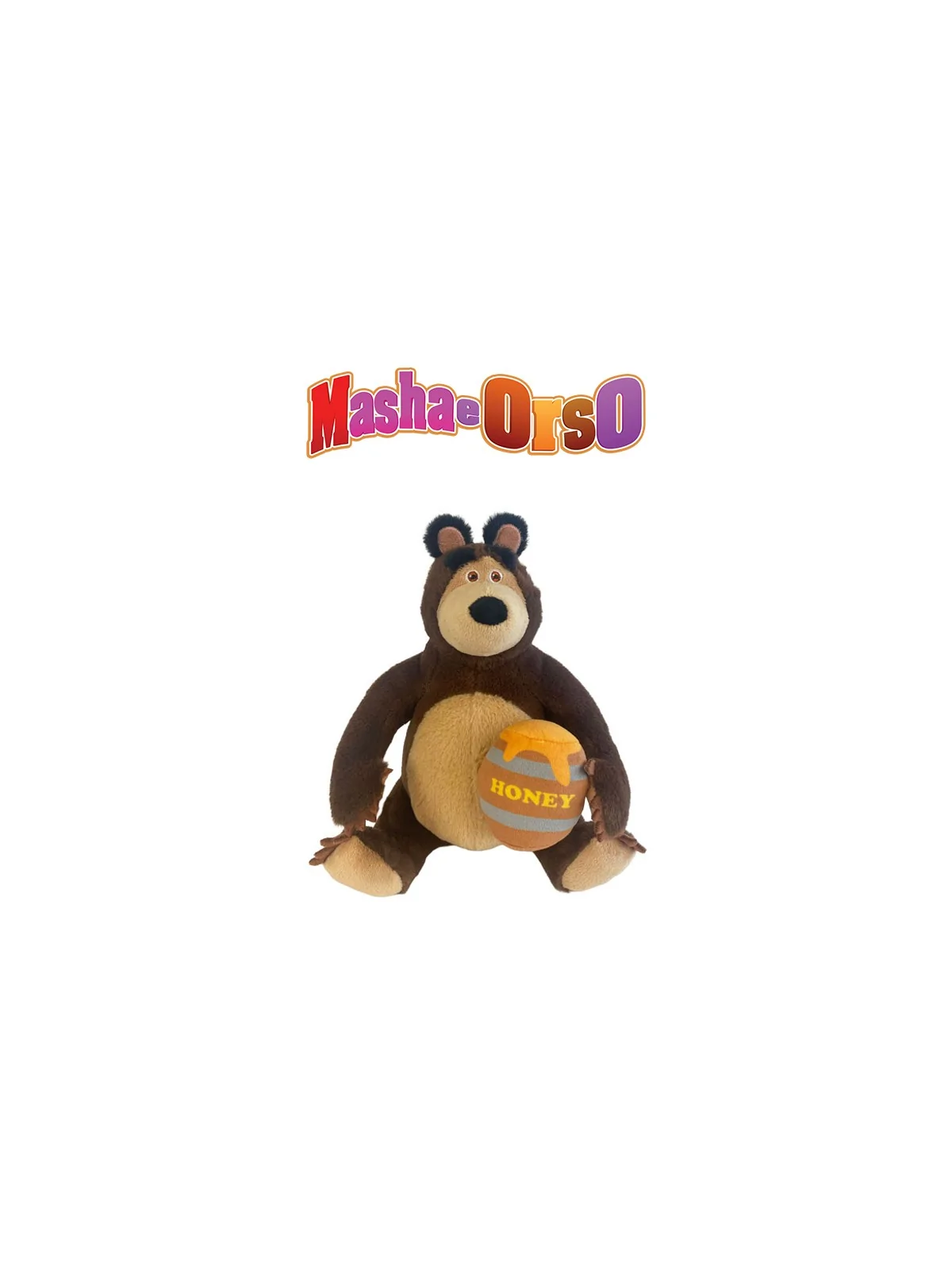 Peluche Masha e Orso Seduto con Barile di Miele 25 CM